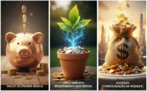 - Planta crescendo em pote de moedas: Simboliza o investimento e o crescimento sustentável.